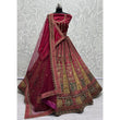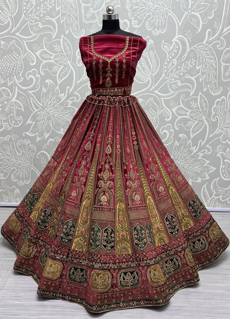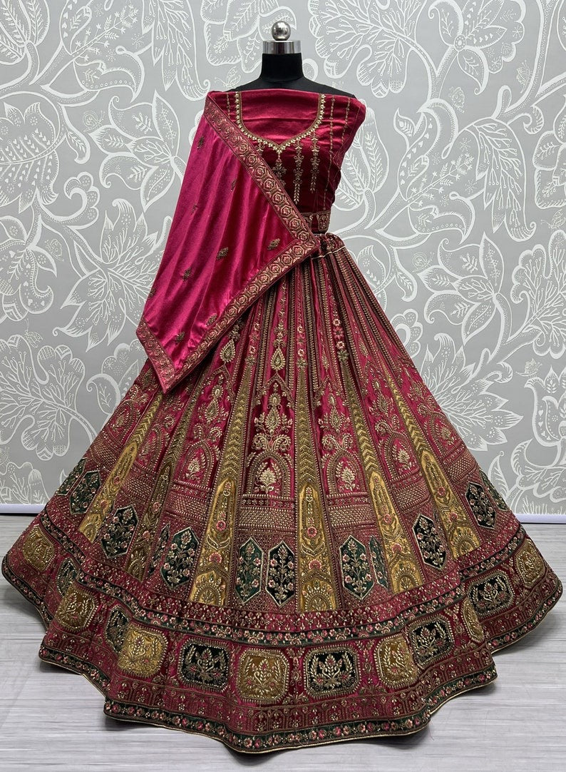 Velvet Fabric Red Colour Magnificent Lehenga with Double Dupatta