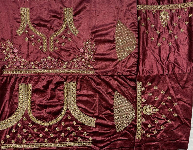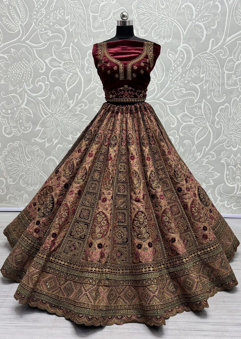 - Fabric Detail: Lehenga : Velvet Dori Embroidered, Multi Thread Work Patch Kali, Sequence And Diamond Studded Standard Cancan And Canvas Attached Free Size Up To 42 Apx Blouse : Velvet 1 Mtr Unstitched Dupatta : Softnet And Velvet Four Side Beautiful Lace And Butta All Over