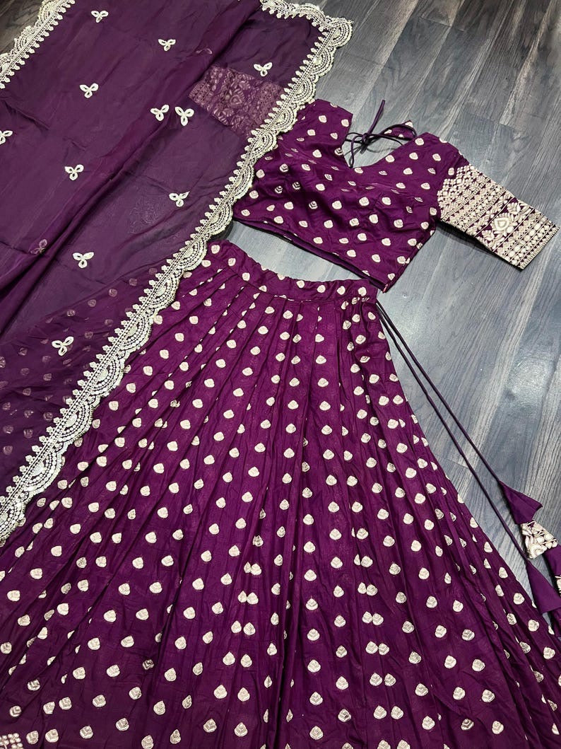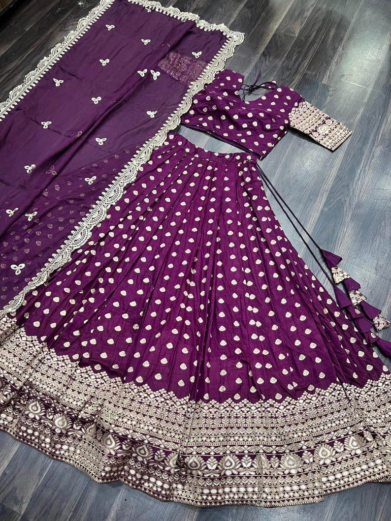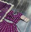 Viscose Reception Wear Jacquard with Embroidered Work Wine Lehenga Choli Chanderi Lehenga Choli