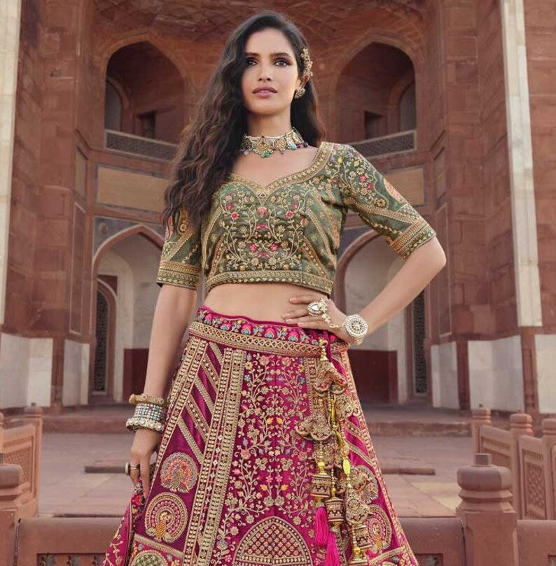 Wedding Pink & Green Traditional Bridal Lehenga