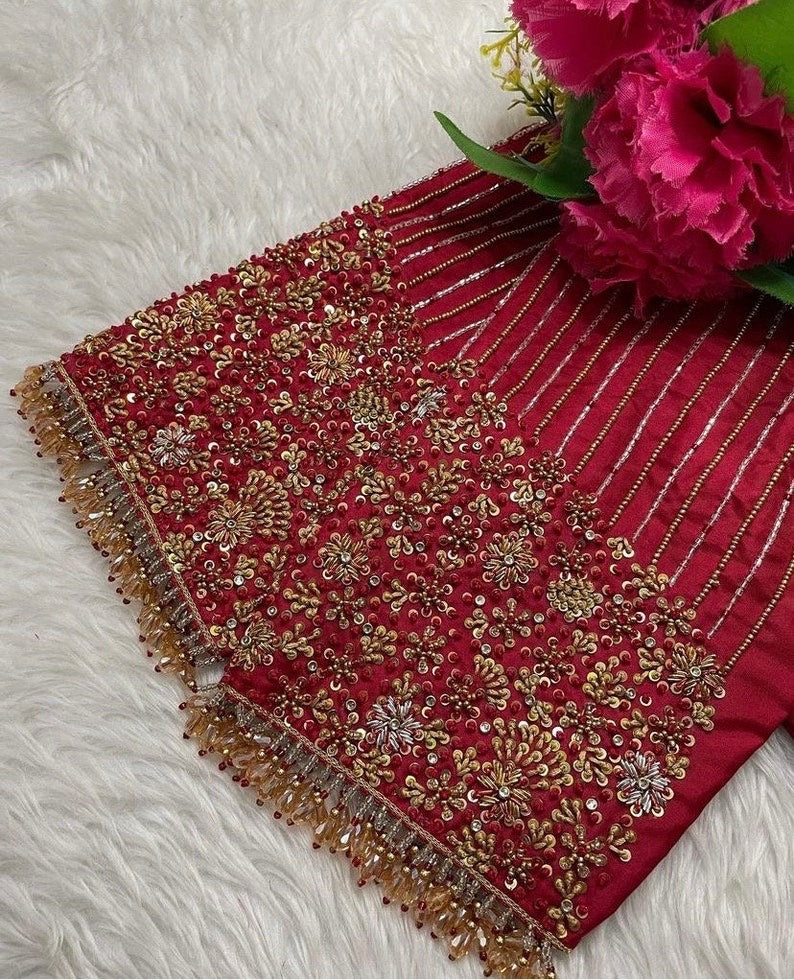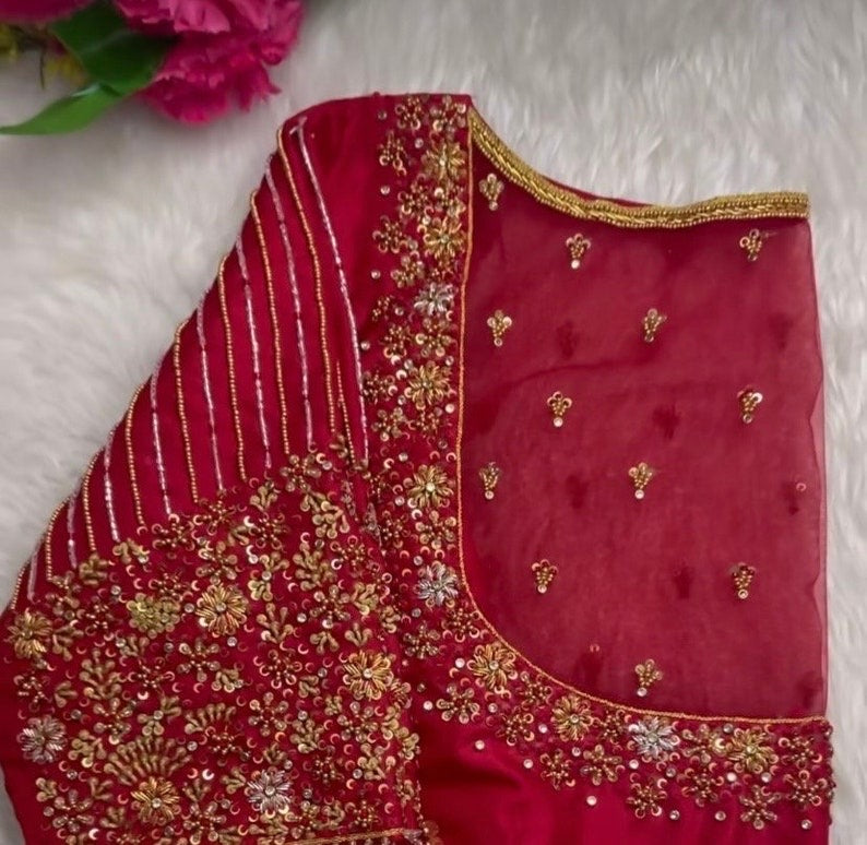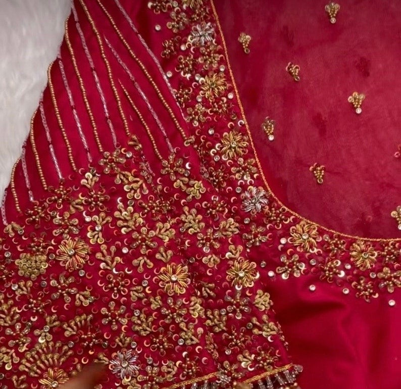 Neck : U neck front about 8 in,back high neck with soft net cutout embroidery about 11 inch deep