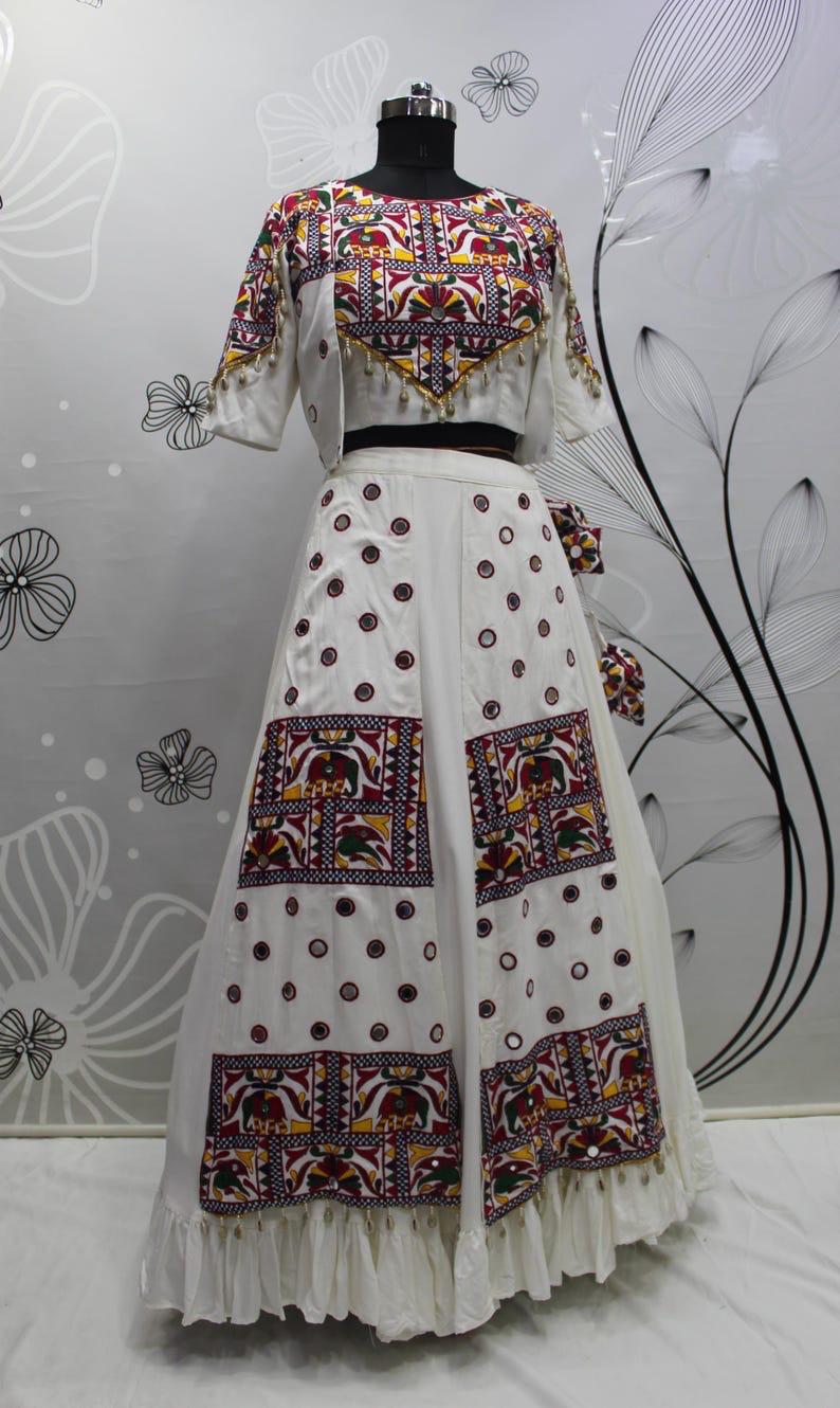 White color fully stitched navratri lehenga choli