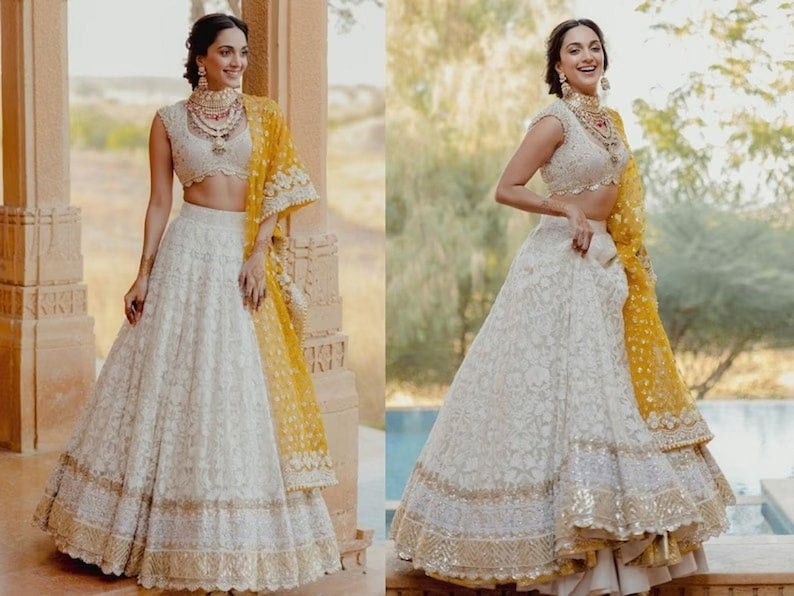 - Pair this enchanting ensemble with a trendy bun hairstyle and a set of heels to enhance the overall elegance. The semi-stitched lehenga ensures a comfortable and stylish fit, allowing you to dance the night away with confidence and grace.