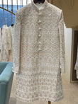 White handwork mirror sherwani