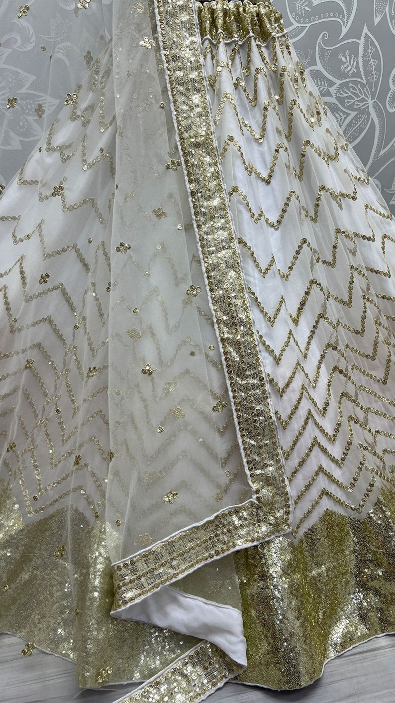 White Net Embroidered Lehenga Choli for Wedding