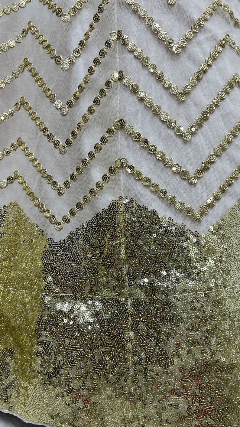 LEHENGA FABRIC : FAUX GEORGETTE WITH 5 MM EMBROIDERY SEQUENCE LACE BORDER (SEMI STITCHED)