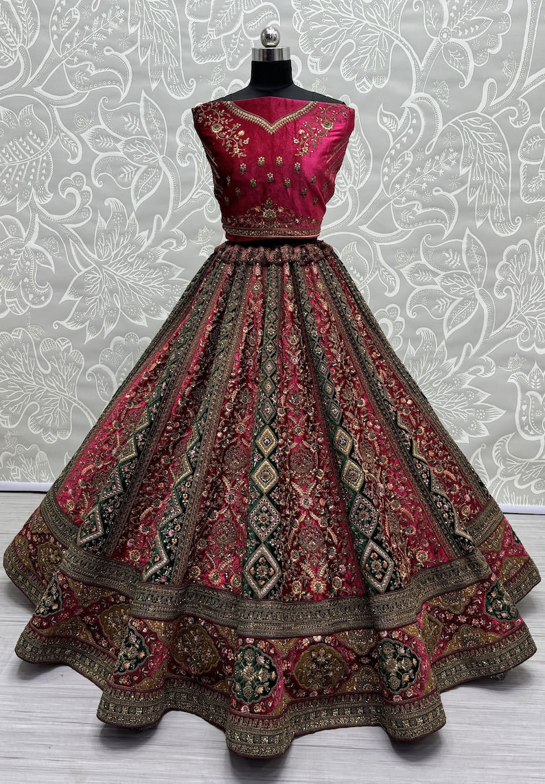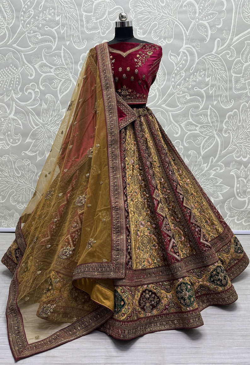 Women's Designer Heavy Dynamic Velvet Bridal Wedding Lehenga Choli