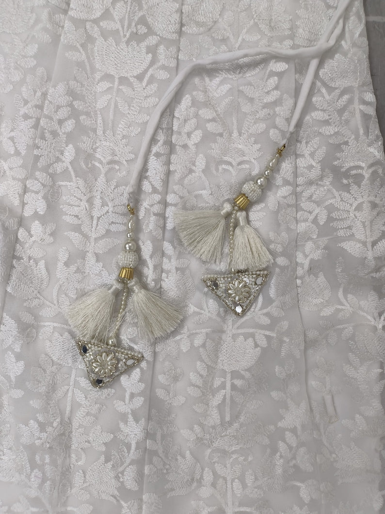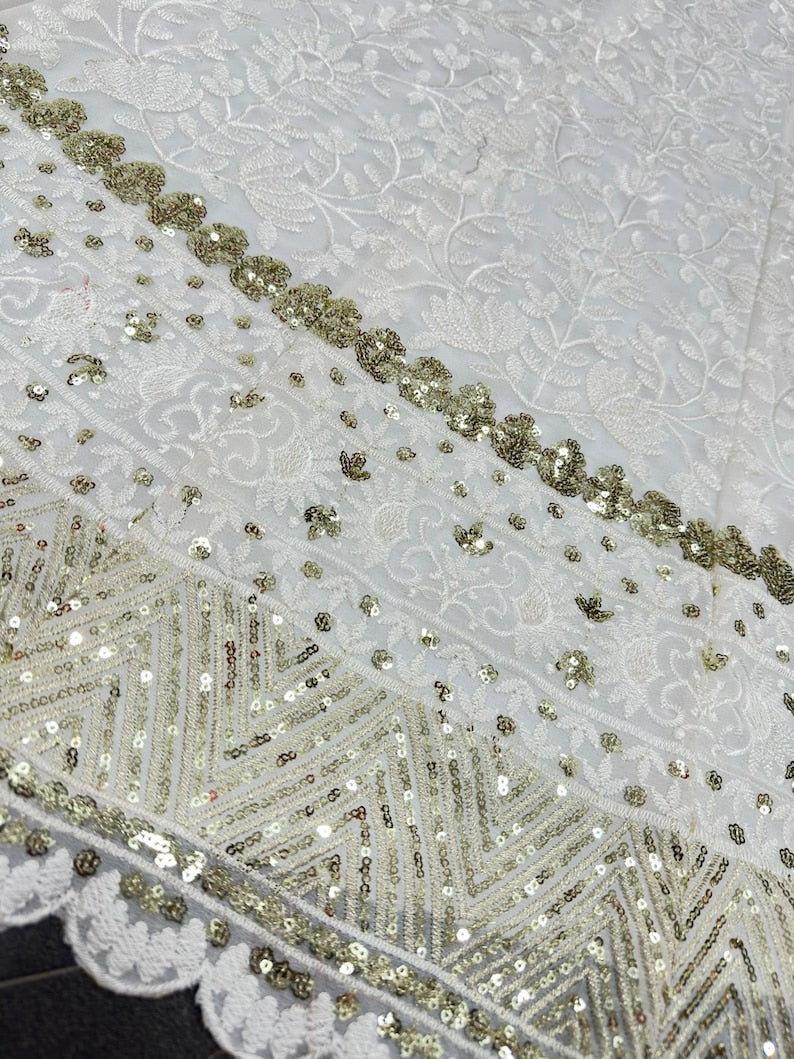 Women's Georgette Semi-Stitched Lehenga Choli White Wedding Bridal Free Size