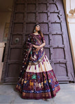 Women's Patolaa Print With Foil Work Tussar Silk Lehenga Choli