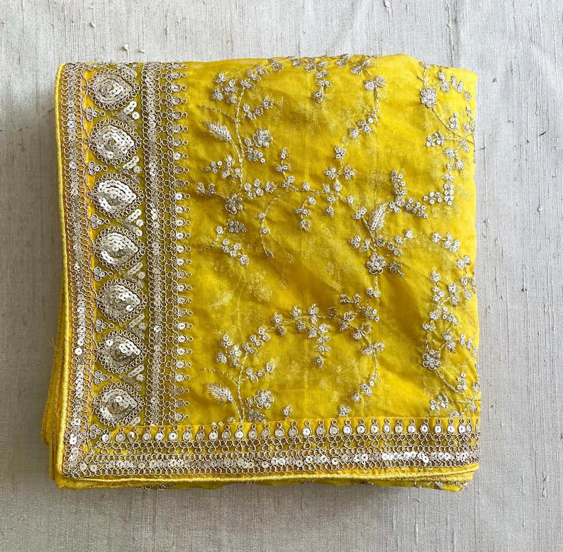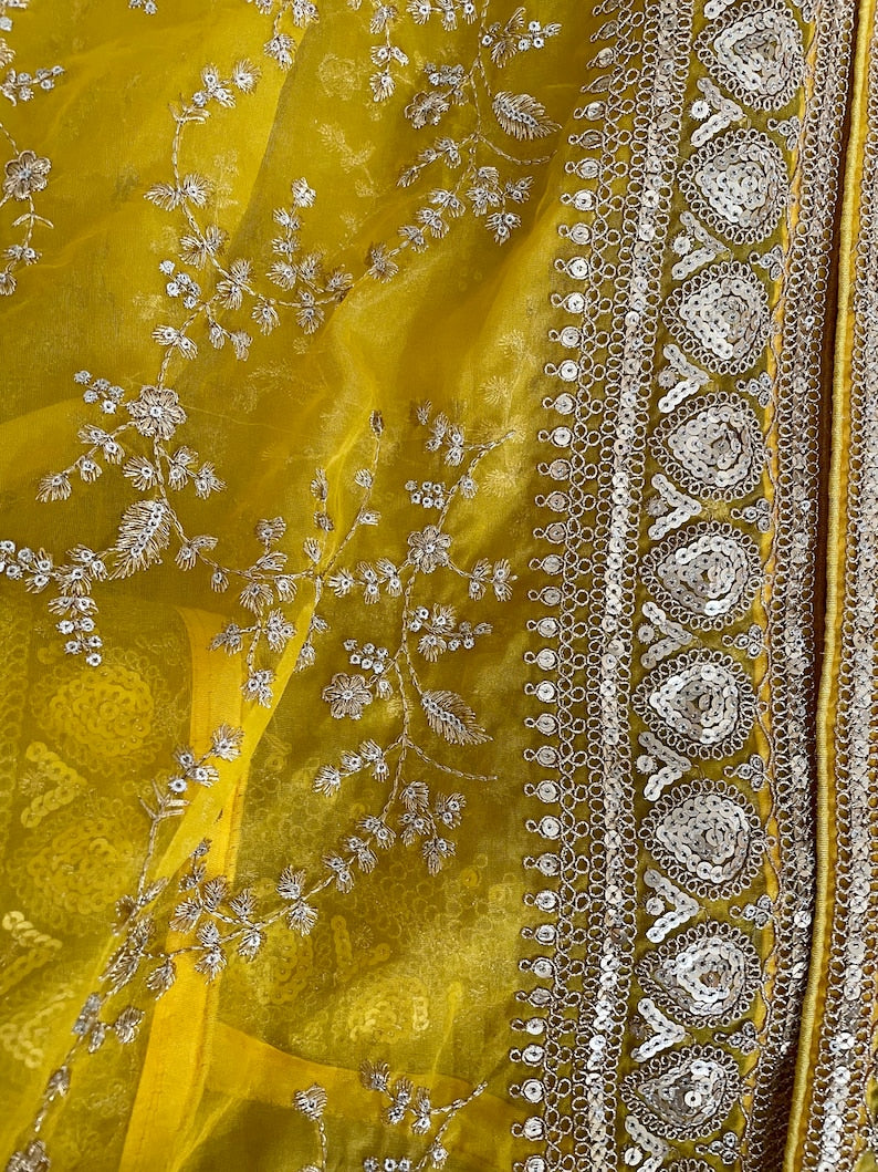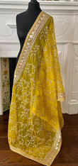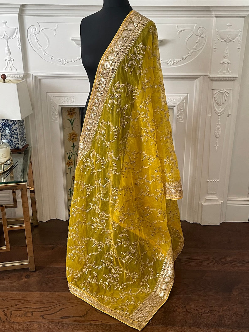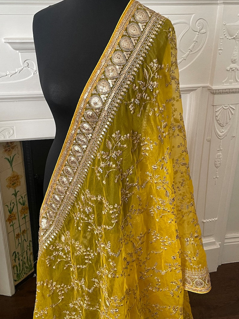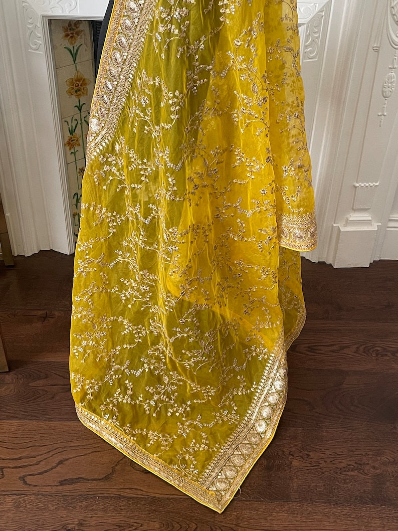 Yellow Organza Duppatta Zari embroidered border Scarf Chunni