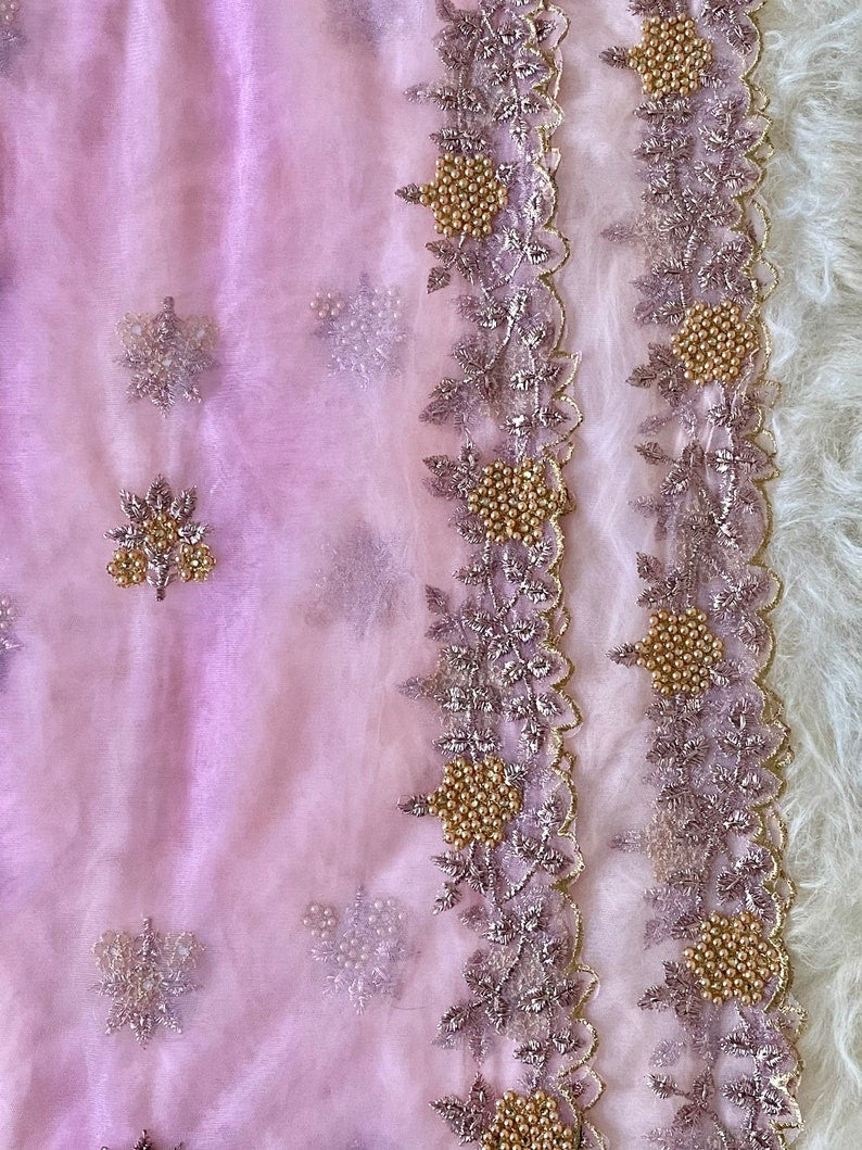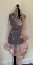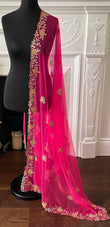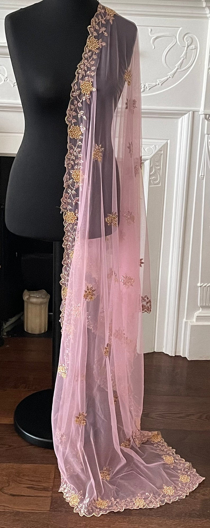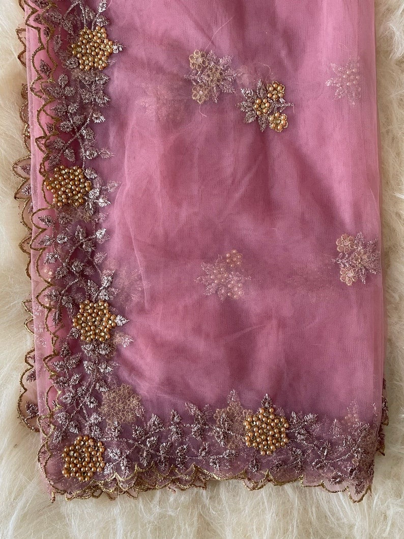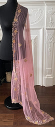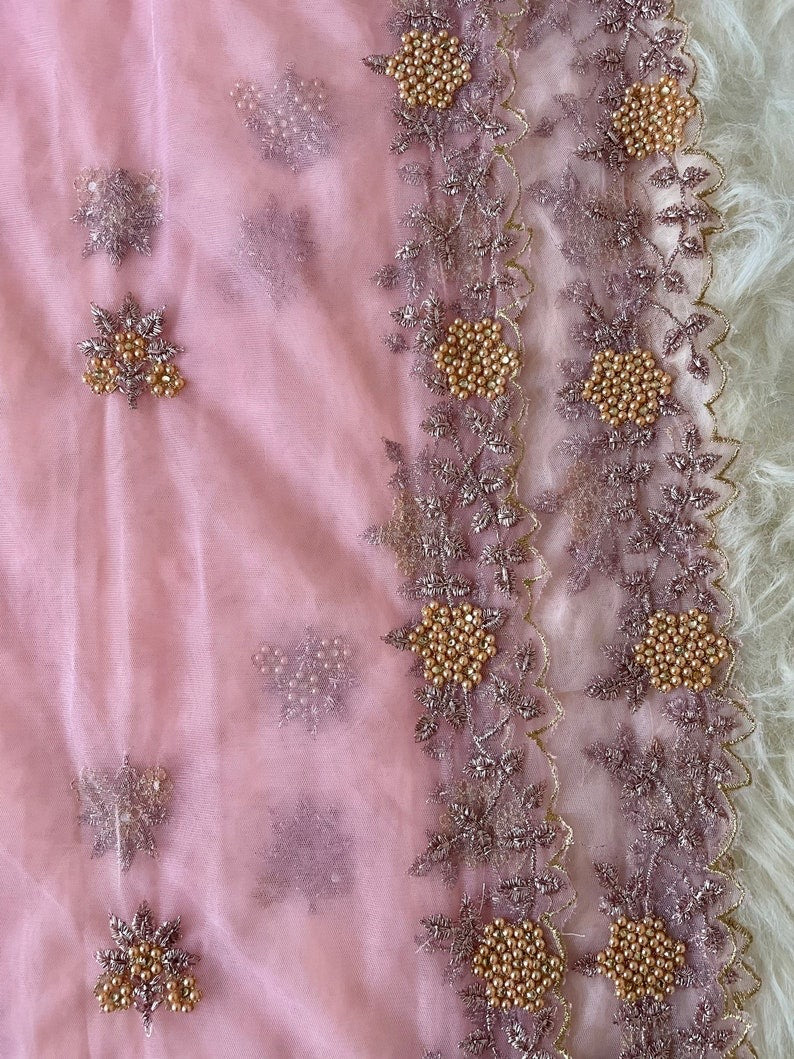 Pinks Net Duppattas Zari champagne Pearl embroidered scallop border Scarf Chunni Chunri Odhni update your Salwar Kameez Lehengas Kurtis.